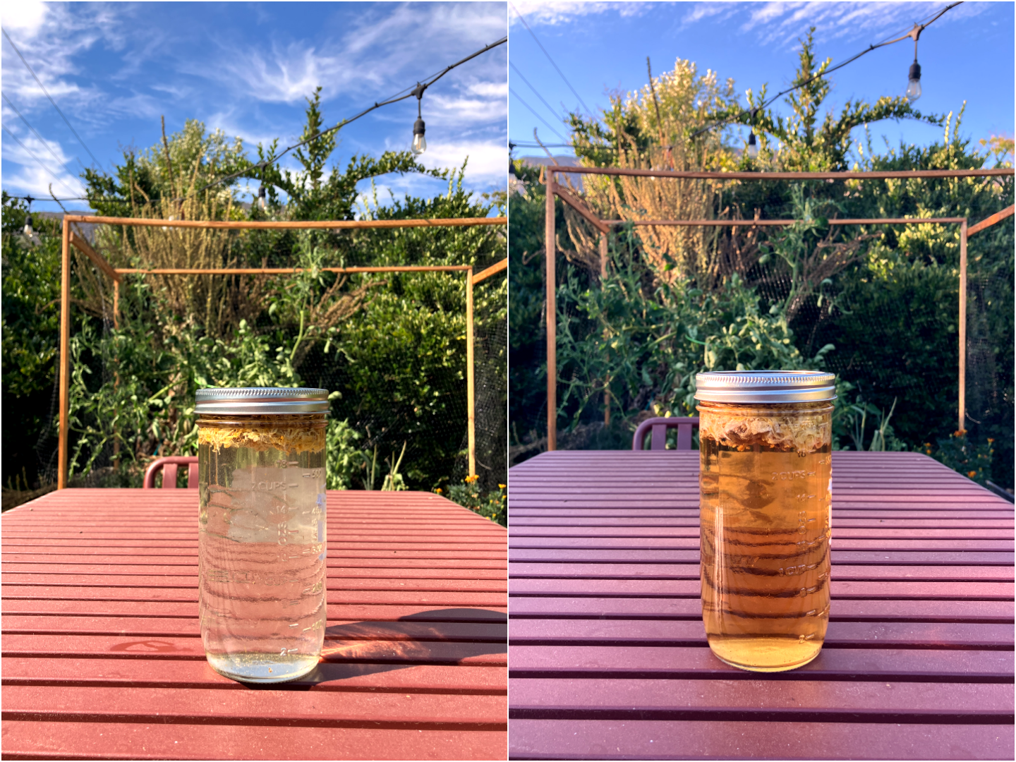Directions: Fill a quart jar with the dried calendula and water. Cover and let infuse in the sun for 2-4 hours. Strain, drink, drink up the sunshine. It’s a little bitter, a little floral, but not overwhelmingly so.
